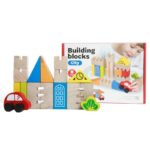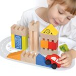 Le jeu de construction en bois “Ville” avec une petite voiture – un excellent jeu pour les petits amateurs de construction et de conduite.