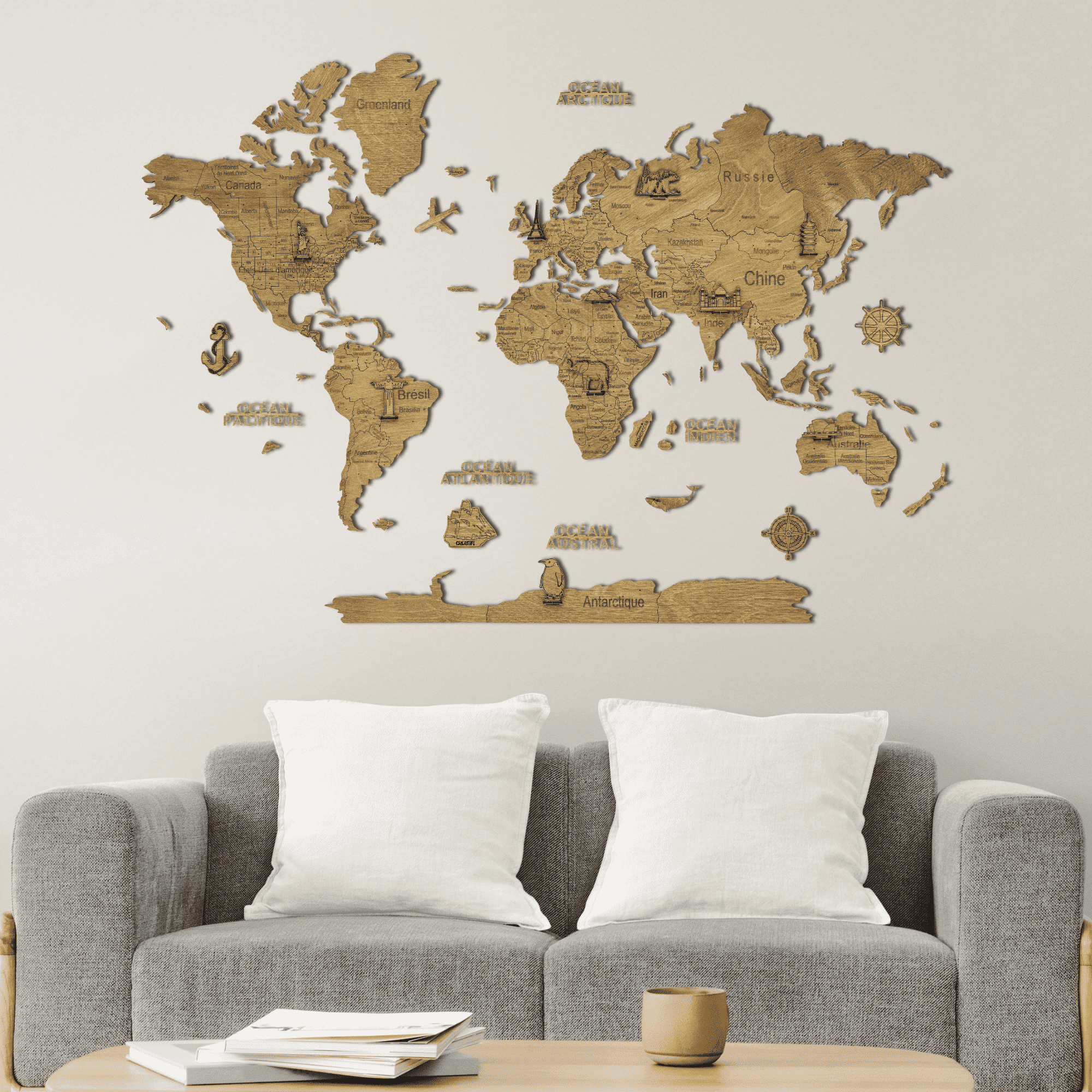 Une carte du monde en bois comme décoration murale peut être une excellente façon d’ajouter une touche unique et artistique à votre espace. Elle peut être utilisée comme décoration murale dans différentes pièces de votre maison, y compris le salon, le bureau ou la chambre.