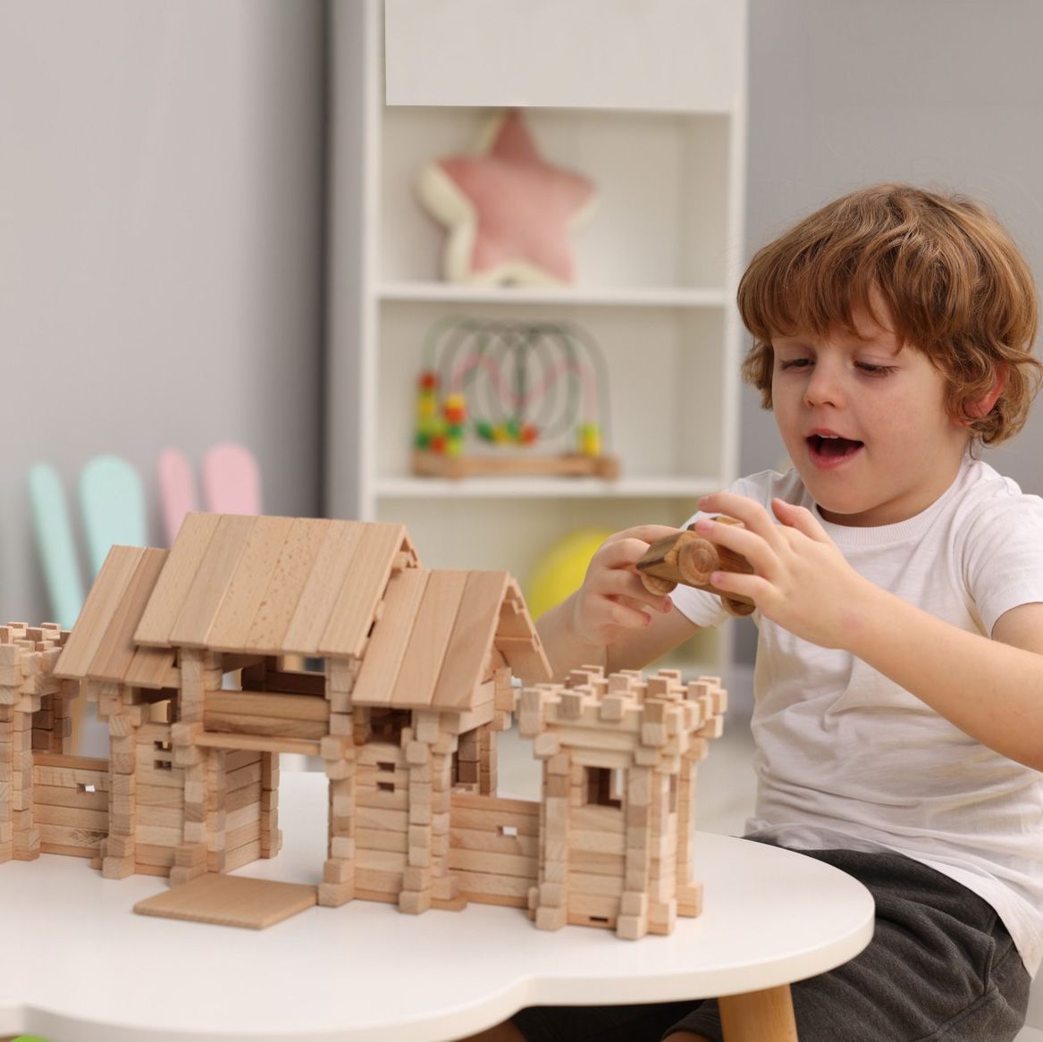 Jeu de construction en bois Maison avec Balcon 136 pièces