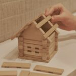 La connexion des 75 pièces du kit, parmi lesquelles des poutres, des demi-poutres et des éléments pour construire le toit, donne à l’enfant une compréhension des bases de la construction des bâtiments en bois – une méthode authentique de construction de maisons dans les Carpates. Les poutres et les demi-poutres ont des encoches pour les assembler. Les poutres ont une section carrée. La pièce la plus courte mesure 24 mm, tandis que la plus longue mesure 120 mm.
