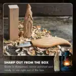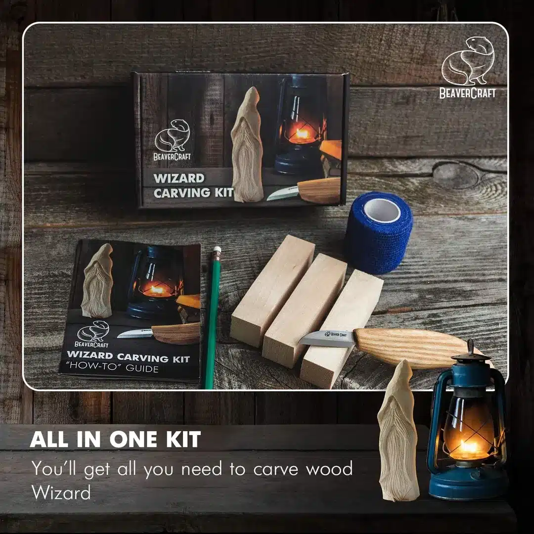 Si tu veux faire sortir la magie du bois, découvre notre set DIY03 Wizard et essaie-toi à ce loisir passionnant et captivant qu’est la sculpture sur bois. Dans ce kit tout-en-un, tu trouveras tout ce dont tu as besoin pour ta première tentative de sculpture. Il comprend un couteau de sculpture robuste et de première qualité, du ruban de protection, trois blocs de tilleul de qualité supérieure, un motif « Wizard », un crayon et un tutoriel vidéo détaillé pour t’assurer une expérience de sculpture agréable et amusante.