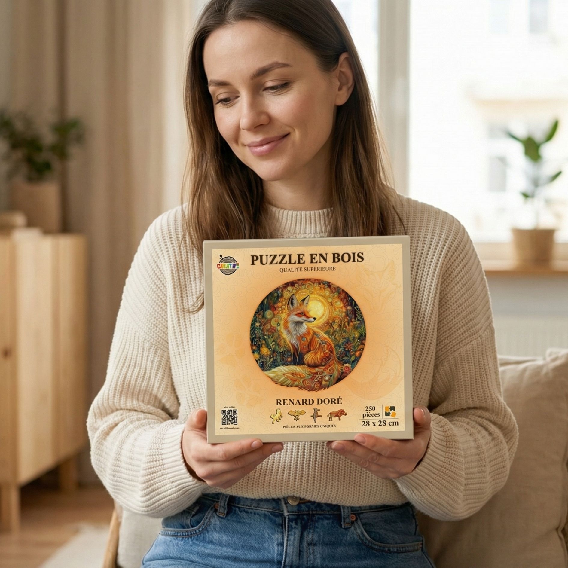 Les traits fins et délicats de ce puzzle soulignent l’élégance naturelle de l’animal, avec des formes arrondies et fluides qui créent une impression de douceur. Le renard est ici représenté comme un gardien rusé de la forêt, mystérieux et séduisant.